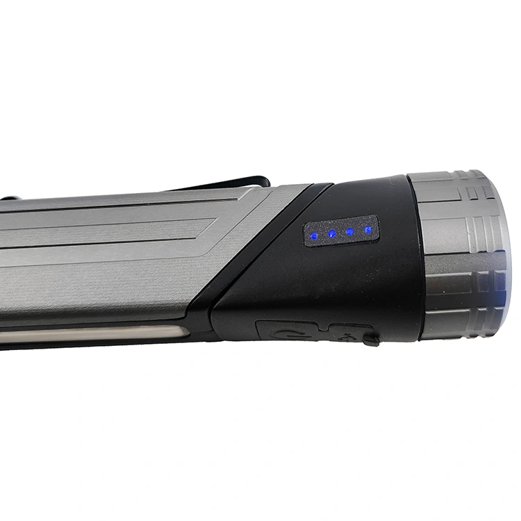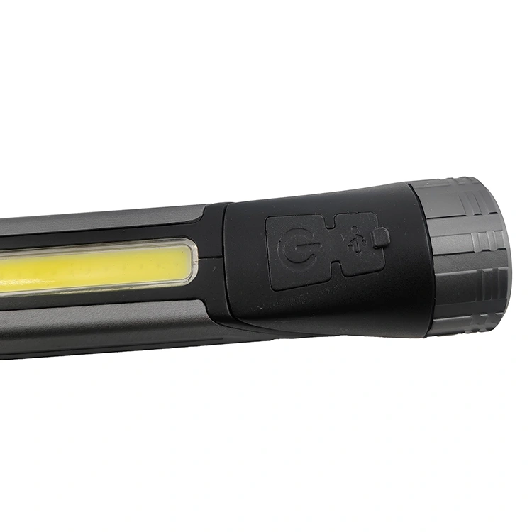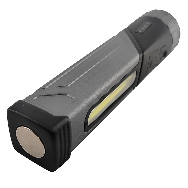 Cette lampe de poche de travail multifonctionnelle est dotée d'une lumière principale LED et d'une lumière latérale COB. Il offre quatre modes d'éclairage (éclairage principal : élevé 120 LM / faible 60 LM ; éclairage latéral : élevé 150 LM / faible 75 LM) pour répondre de manière flexible aux différents besoins d'éclairage. L'interrupteur à un bouton assure un fonctionnement simple et rapide. La tête de la lampe de poche pivote à 90 degrés pour un réglage facile de l'angle du faisceau. Un aimant intégré à la base permet la fixation sur des surfaces métalliques, et il est également livré avec un clip de poche pratique pour le transport ou la fixation. Il est rechargeable, alimenté par une seule batterie au lithium 18650 (1 200 mAh), offrant environ 2 à 5 heures d'autonomie. c'est un choix idéal pour les tâches quotidiennes, les activités de plein air et l'éclairage de secours.